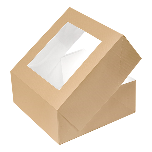 Kraft brown card self errecting boxes made from nano-micro flute corrugated board to ensure additional strength and rigidity to the box, adding further protection for your cakes.