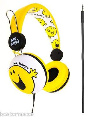 6 x JOB LOT Mr Men Happy Kids Children Stereo Headphones Tangle Free Flat Cable