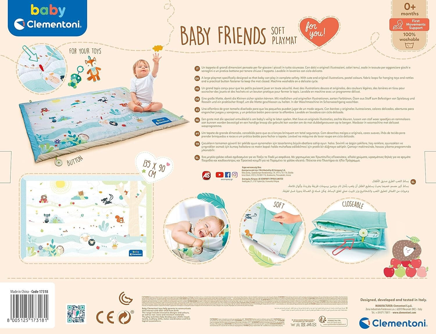 months and older. Playmate dimensions: 135 x 90 cm.