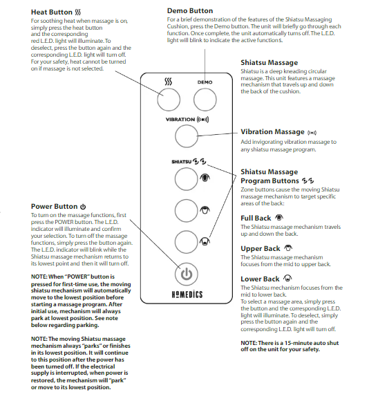 Graphic Remote Control – Choose from 3 massage zones: full back, upper back, or lower back
