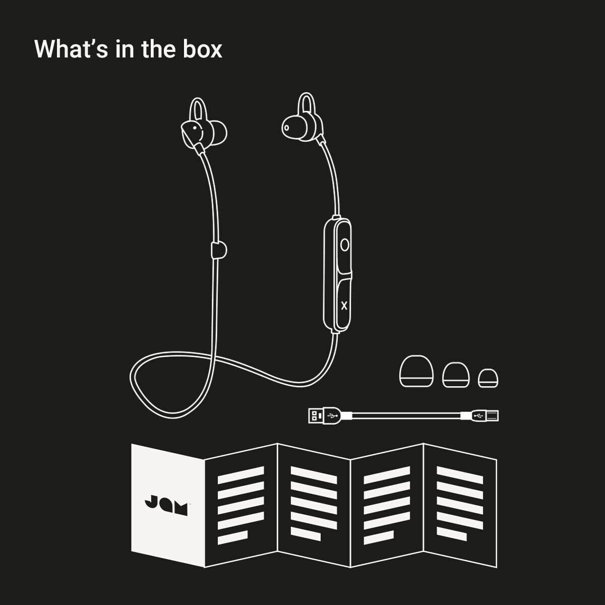 Jam Wireless Bluetooth 6 Hour Sport Sweat Resistant Lightweight - White & Grey