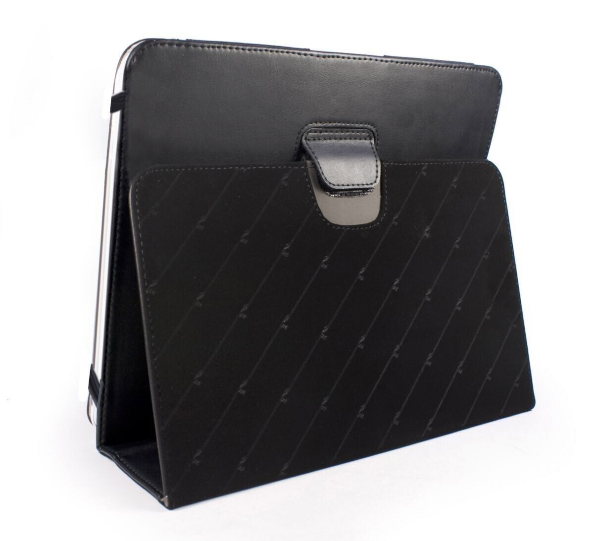 Whether in your lap, on your desk, or on a coffee table, make the most of your tablet media capabilities with the brilliant Type-View case from Tuff-Luv! Anywhere you set it, the secure Velcro tab will allow you to smoothly move your tablet from viewing or typing positions.