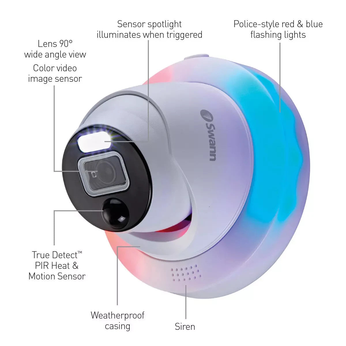 With the Swann Security app, you can even watch live or playback video on your smartphone from anywhere in the world. In fact, you can view any of the cameras on your smart TV, and speak to see hands-free via Hey Google or via Alexa devices.