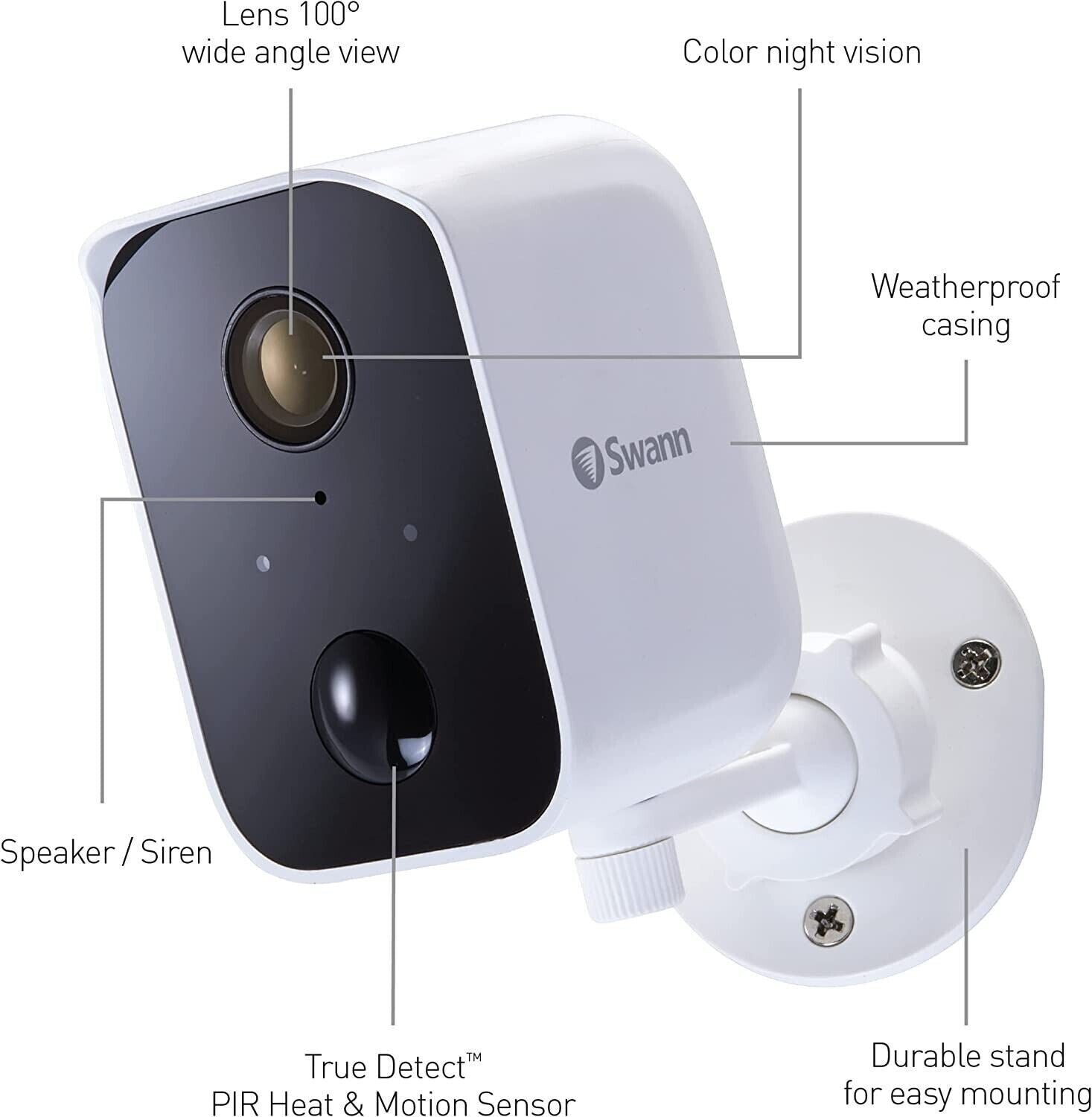 Designed to withstand temperatures ranging from 14ºF to 113ºF (-10ºC to 45ºC), the Core Cam is built to withstand the elements, ensuring reliable performance regardless of the weather conditions. For added convenience, Swann recommends using a higher amp charger for faster charging, ensuring that your Core Cam is always ready when you need it most.