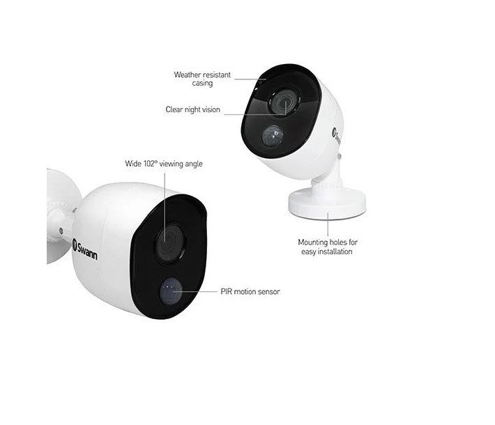 This system Swann’s True Detect PIR Thermal Sensing technology to reliably detect heat-generating moving objects, such as people, large pets & cars. With more accurate motion detection you have more reliable notifications & recording, eliminating false triggers such as falling leaves, bugs, rain & more, saving you hard drive space & playback time.
