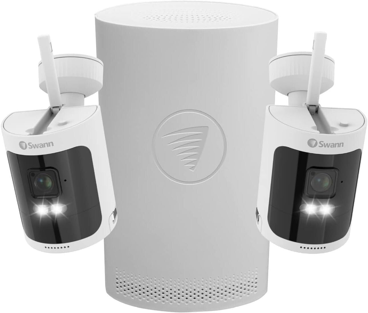 Swann AllSecure600 Wi-Fi NVR Security System with 64GB Storage, 2 Camera 8 Channel, 2K HD wireless rechargeable battery camera CCTV, Indoor Outdoor, Colour Night Vision, Heat Motion Detection, 600SD2