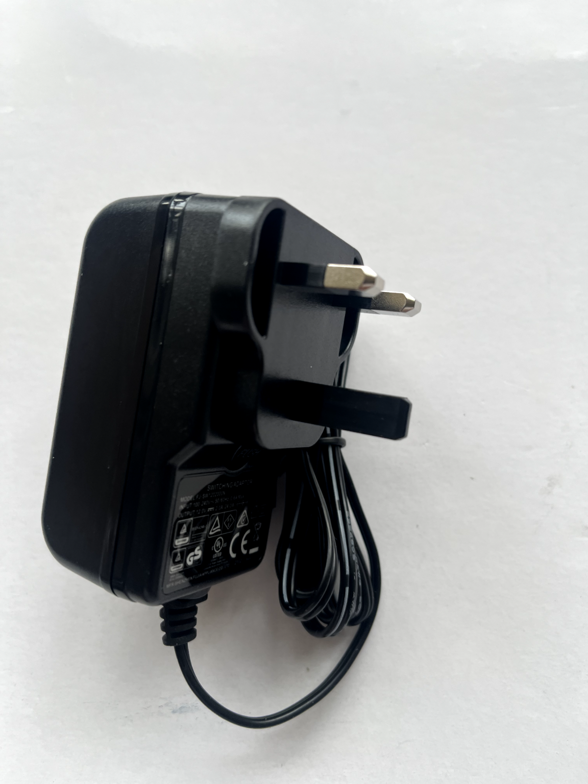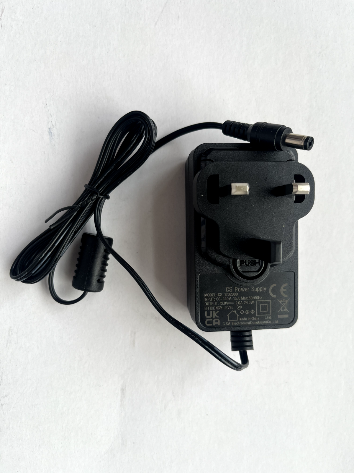 The PSU features a standard 3 pin plug with a 12V DC output with 2000mA