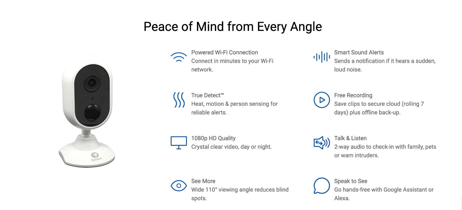Swann Security Alert Indoor HD INDCAM Wi-Fi 1080p Night Vision Wireless 2-Way