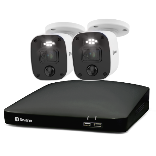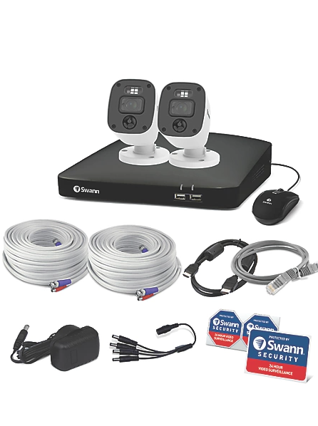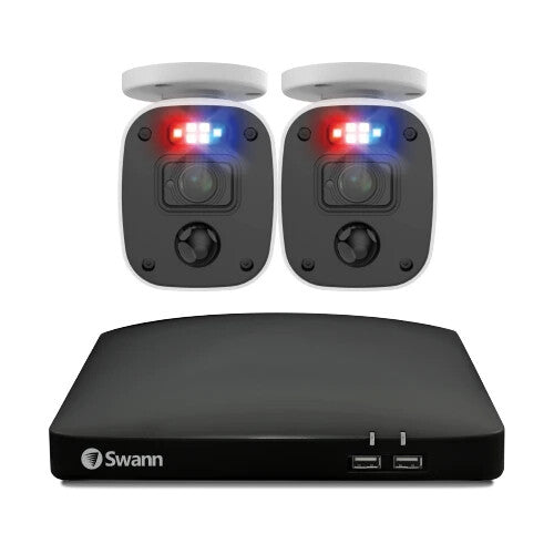 Enhance your security with the Swann DVR 4680 4-Channel System featuring 1TB Storage and 2x 1080MQB Enforcer Cameras. With controllable sensor spotlights and red & blue flashing lights, this system effectively deters intruders. The cameras are equipped with microphones to capture audio, ensuring you hear what's happening, providing essential evidence for identification.