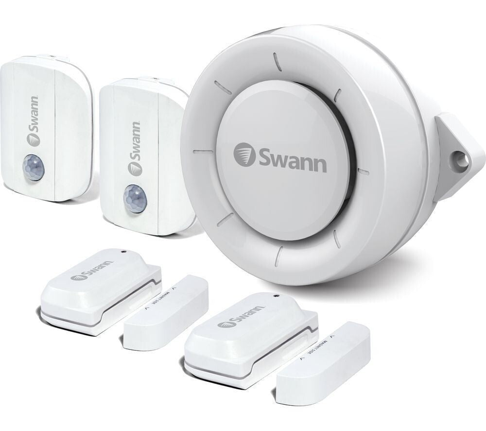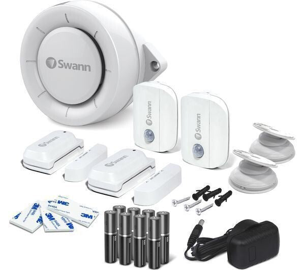 Swann Security Alert Kit. Includes 2 Wi-Fi Motion Sensors, 2 Window/Door Sensors & Indoor Siren