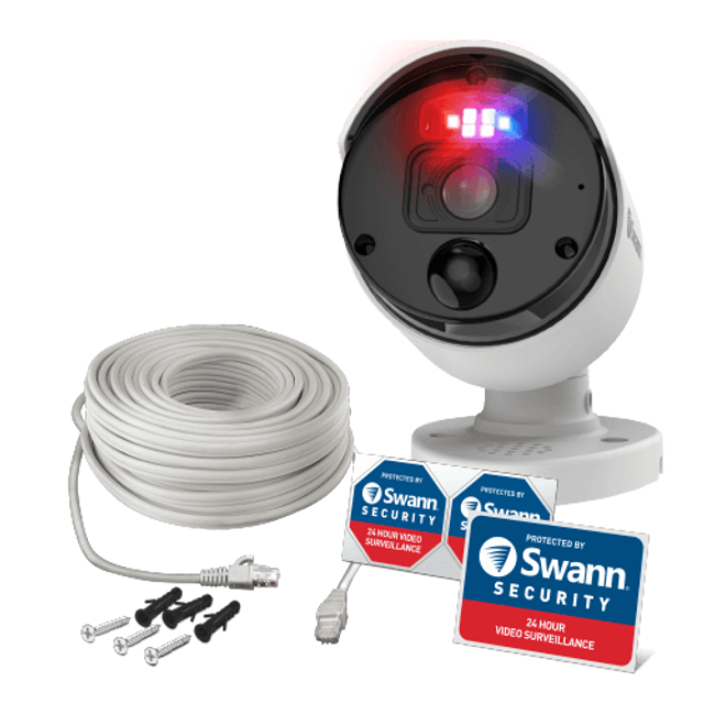 Connect, see and control multiple Swann devices at different locations, from anywhere. Customize camera camera settings for home, night and away modes. Speak to see via native integrations with Hey Google & Amazon Alexa. What's in the box: 1x Swann NHD-900BE 1x Ethernet Cable 1x Theft Deterrent Sticker 1x Mounting Screws & Plugs |