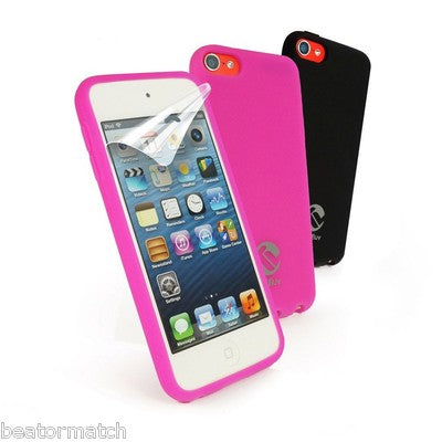 Tuff-Luv Silicone Gel Twin Pack for Apple iPod Touch 5 with Screen Protector - Black & Pink