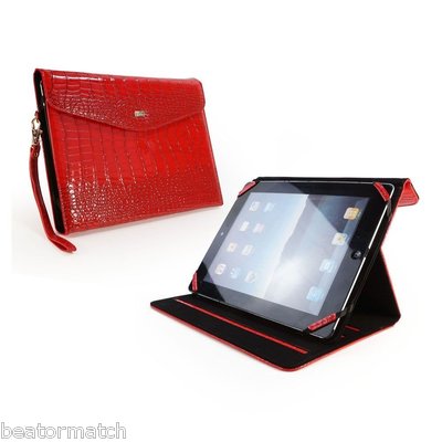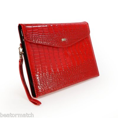 TLC Patent Croc Leather Clutch Purse Case Cover/Stand for Apple iPad/Retina Sleep Function - Red