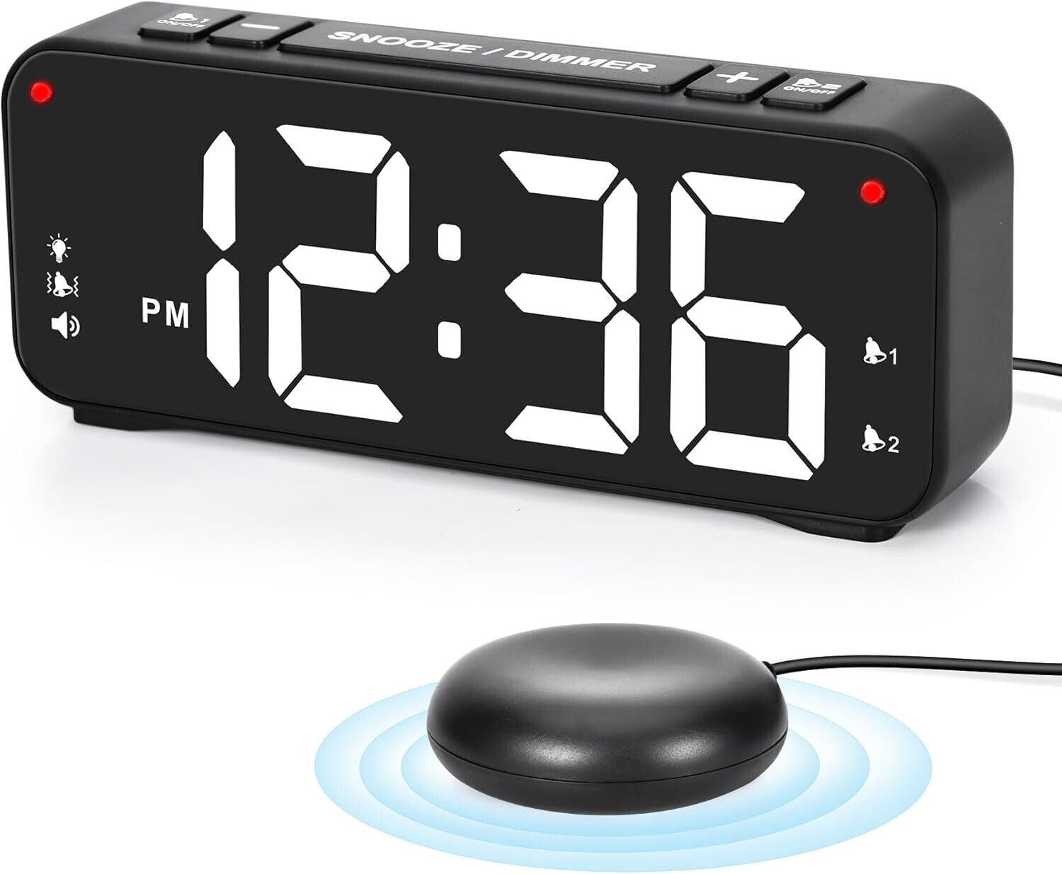 Vibrating Alarm Clock for Heavy Sleepers, 90db Loud with Snooze & LED Display