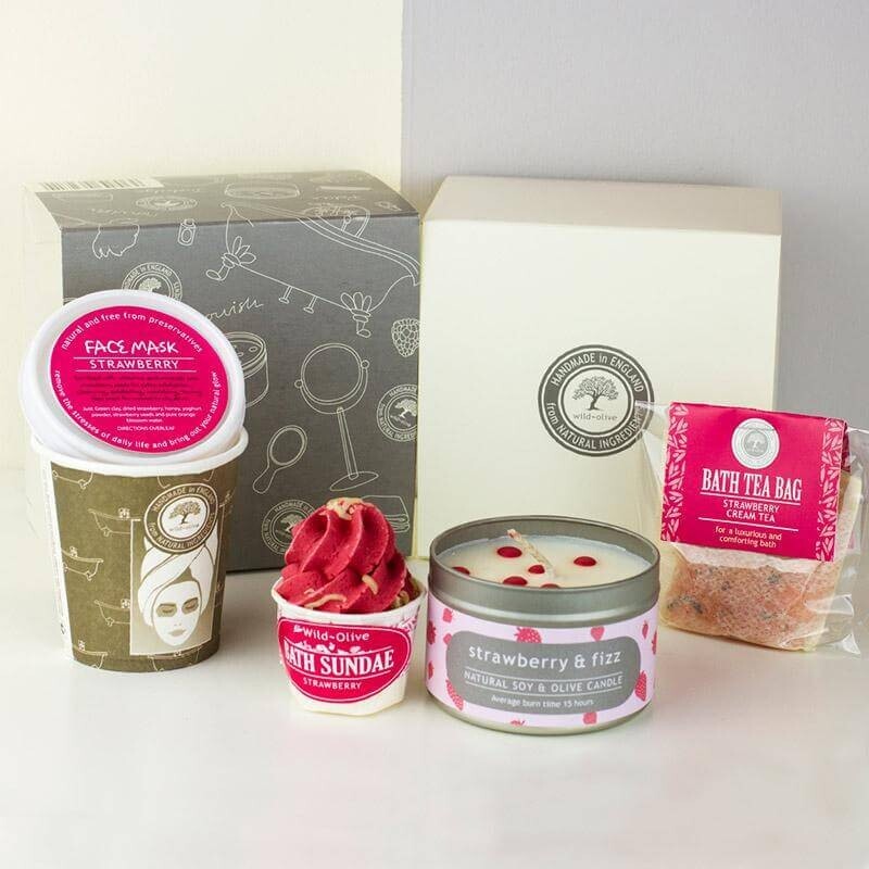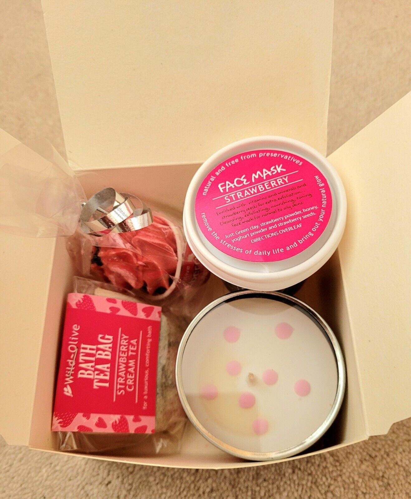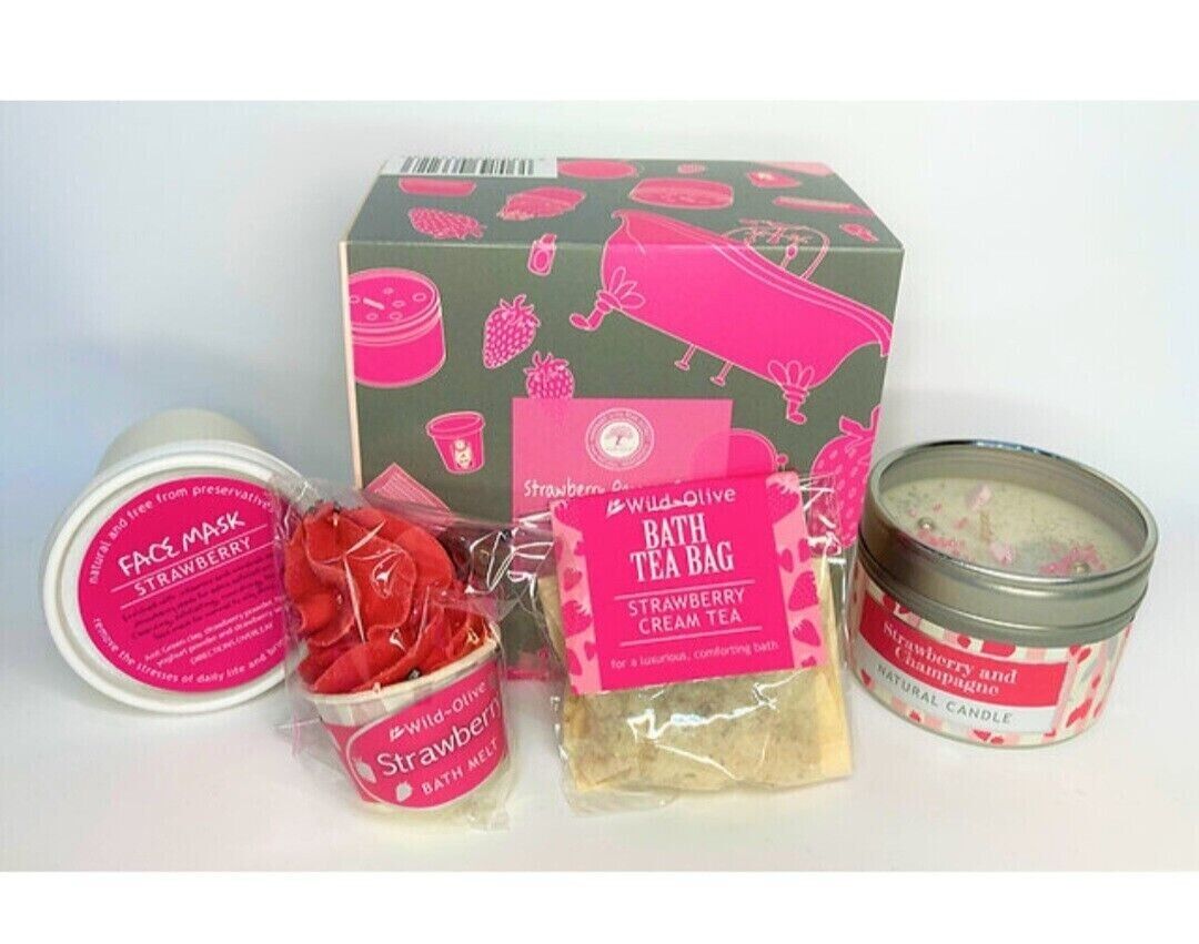 There's nothing quite like the gorgeous smell of strawberries and cream! This wonderful bath time collection includes a strawberry face mask, strawberry cream tea bathing tea bag, a divine strawberry bath melt and a natural soy and olive strawberry candle. The perfect gift for anyone in your life that deserves a bit of 'me time!'.